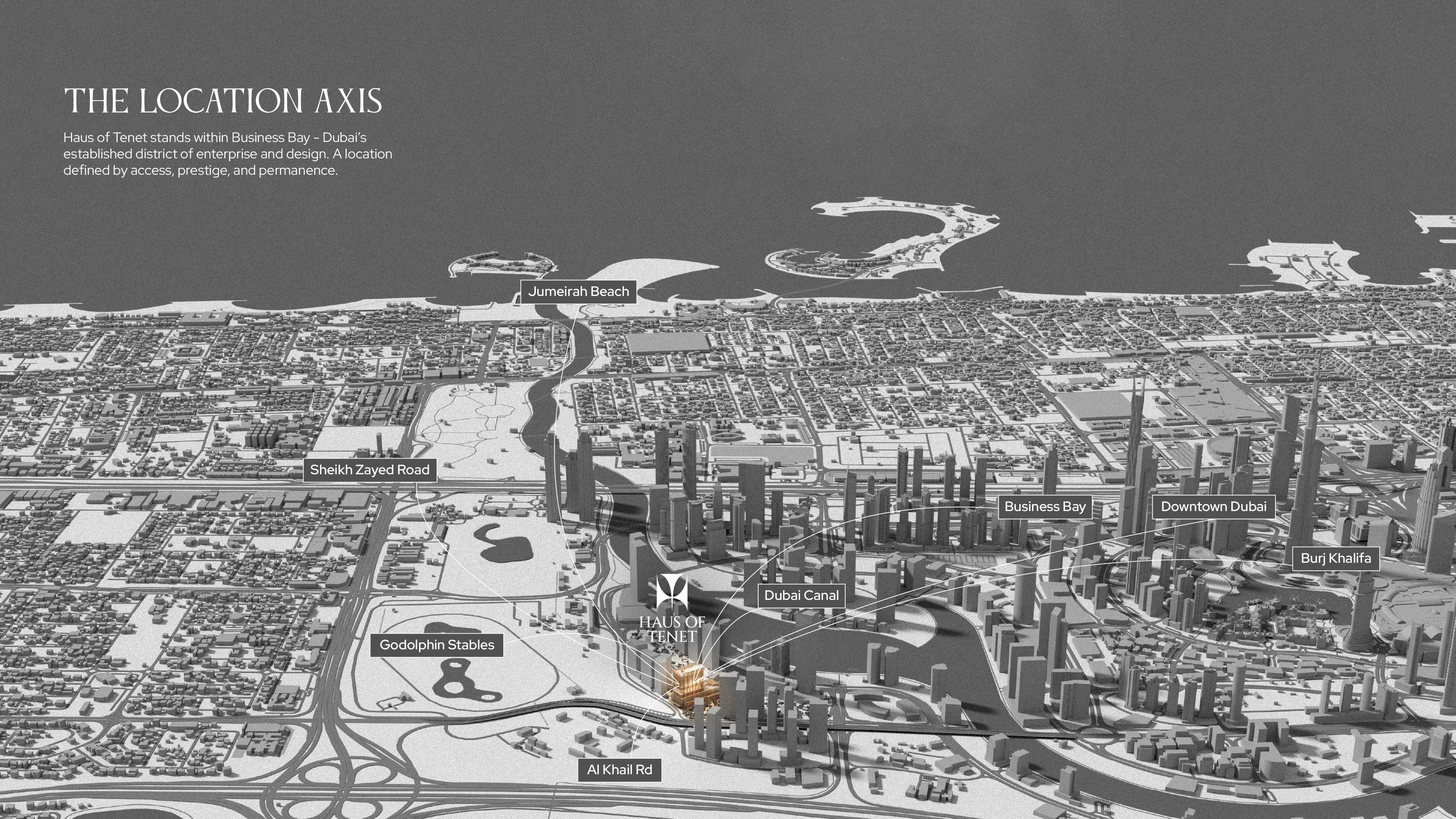 Haus of Tenet stands within Business Bay - Dubai’s established district of enterprise and design. A location defined by access, prestige, and permanence.